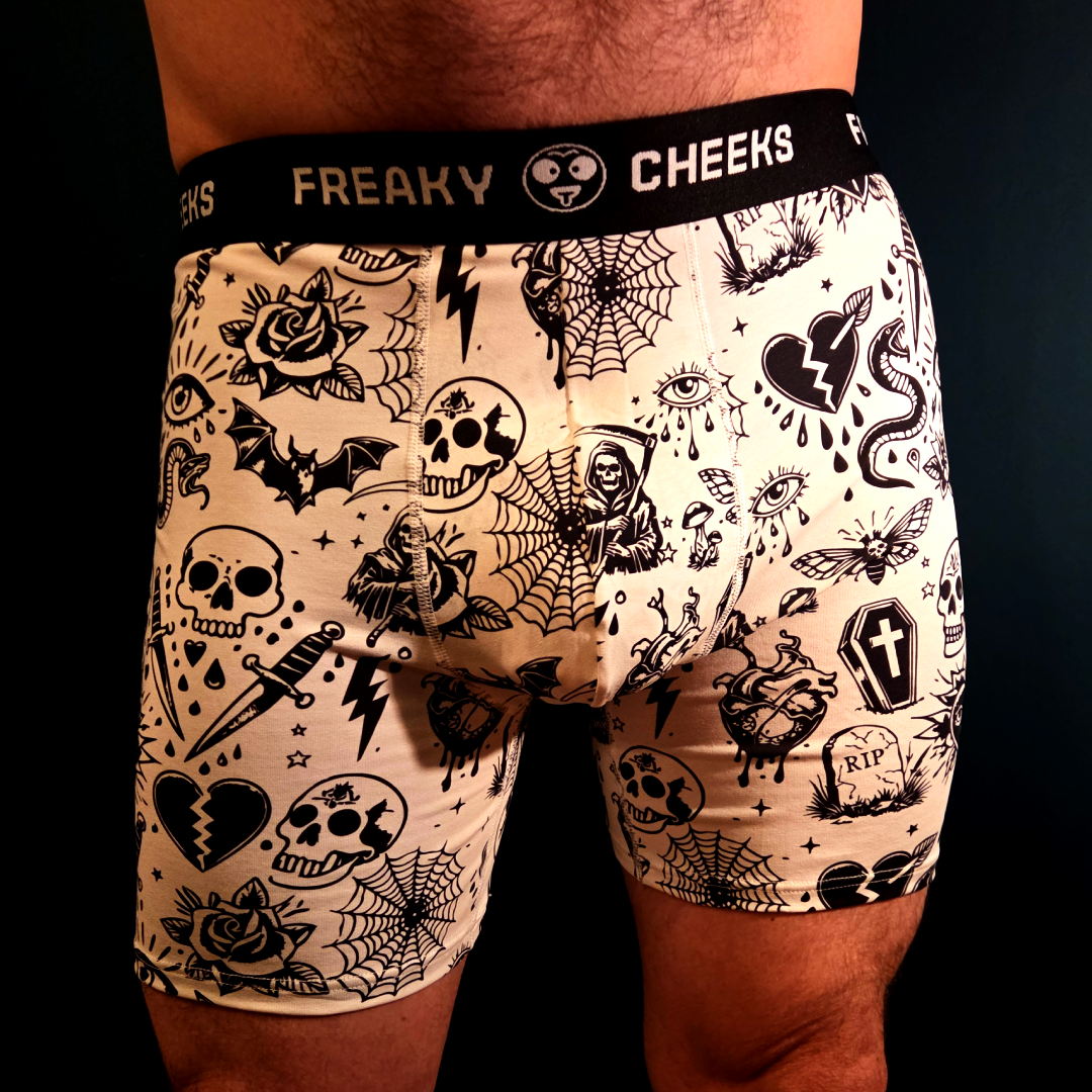 Inspired by classic tattoo flash and packed with wicked details, these boxers are made for those who live loud, thinks dark, and moves with main-character energy. Whether you're rocking them as a one-time purchase or subscribing for a fresh surprise design every month, these shorts bring the perfect mix of chaos and comfort.